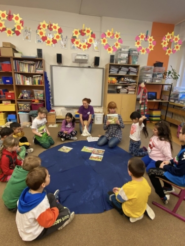 Jarní program s hospodyňkou Bětkou, která dětem vysvětlila, jak se stará o svou zahradu i zvířata. Dojí kozy a z bylinek vaří čaje. V rámci programu se střídaly pohybové, rytmizační, výtvarné i hudební aktivity.