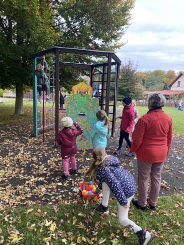 Děti MŠ plnily úkoly na stanovištích připravených žáky ZŠ. Tradiční akce prohlubuje tvorbu vztahů mezi dětmi a žáky, zakončená pěveckým vystoupením.