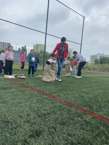 Žáci ze ZŠ si vzali pod svá křídla mladší žáky z MŠ. Vysvětlili jim pravidla při každé aktivitě, kterou společně dělali a zahráli si tak na učitele. Komunikace mezi žáky a dětmi probíhala na výbornou a společně si užili krásné dopoledne plné pohybu.