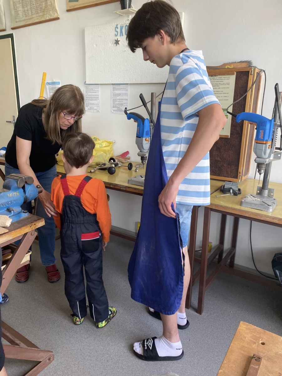 Žáci z vyšších ročníků základní školy si vzali pod svá křídla děti z mateřinky. Společně tvořili v polytechnické dílně domečky a další výtvarná díla. Při tomto tvoření používali vrtačky, šroubováky a jiné náčiní.