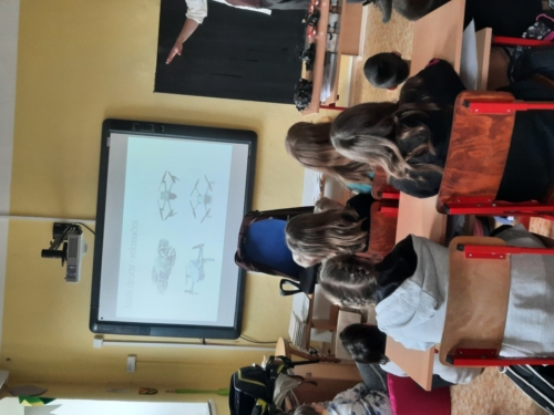 Lektor seznámil žáky s několika druhy dronů a vysvětlil rozdíly mezi nimi. Představil různé možnosti jejich využití v současnosti i možné využití v budoucnu, odpověděl na dotazy. Na závěr se žáci přesunuli na školní zahradu, kde viděli dron v praxi, létat nad budovou školy a pořídit fotografii všech zúčastněných.